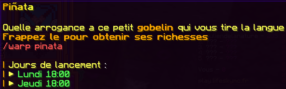 Il vous faudra vous rendre au **/warp pinata** et taper le gobelin pour obtenir ces richesses.